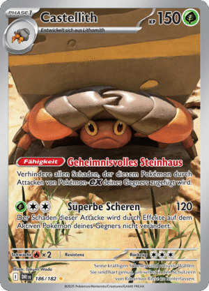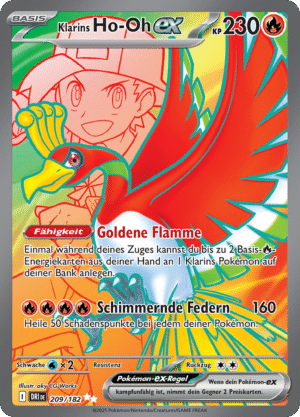 Diese Erweiterung entfacht das Schlachtfeld erneut mit unvergleichlicher Intensität: Mächtige Mega-Entwicklungen kehren zurück. Im Zentrum steht etwa Mega Glurak X‑ex, begleitet von weiteren beeindruckenden Mega-Pokémon ex. Die Themen: Flamme, Dunkelheit und zerstörerisches Potenzial. Spieltechnisch bedeutet das: Wer sich traut, eine Mega-Entwicklung ins Spiel zu bringen, erhält enorme Kampfkraft. Doch Vorsicht: Wird dieses Mega-Pokémon ex besiegt, winkt dem Gegner ein hoher Preis. Optisch überzeugt die Erweiterung durch dramatische Illustrationen: „Sengende blaue Flammen fegen über ein dunkles Schlachtfeld“, eine Szene, die den Übergang zur nächsten Evolutionsstufe markiert. Zusätzlich enthält das Set zahlreiche Ultra-Rares, Spezialillustrationen und eine starke Auswahl an Trainer- und Energiekarten.