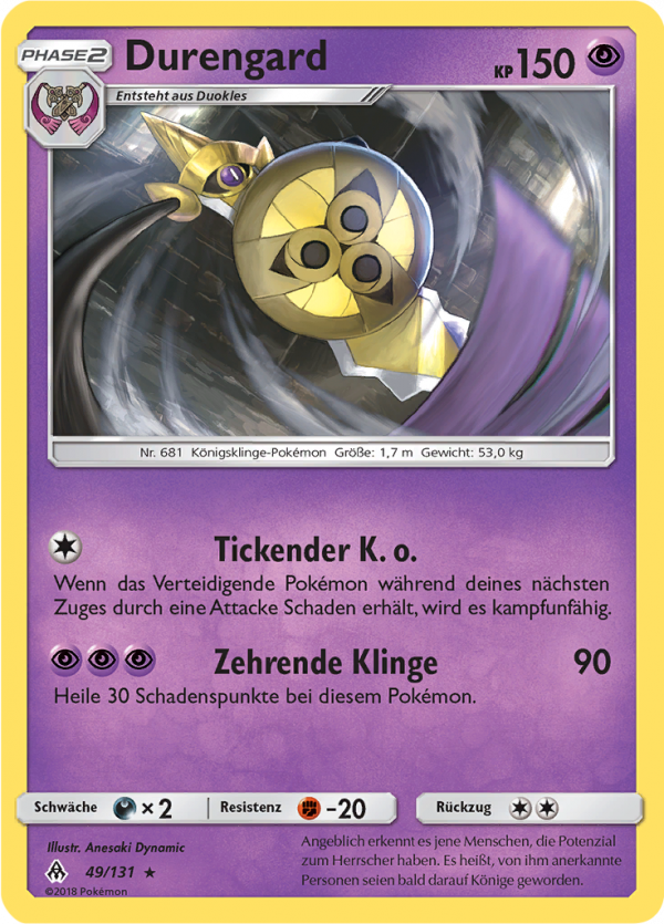 Kaufen? Kaufen Sie Ihre Durengard Pokemon-Karte aus dem Grauen der Lichtfinsternis-Erweiterung.