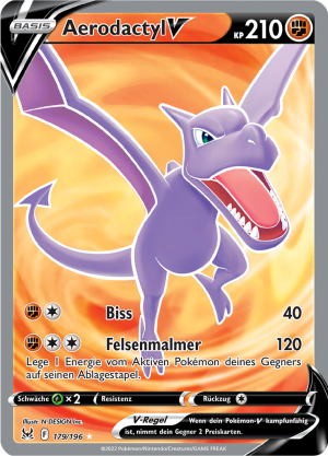 | Kaufen? | Kaufen Sie Ihre Aerodactyl V Pokemon-Karte aus dem Verlorener Ursprung-Erweiterung. |