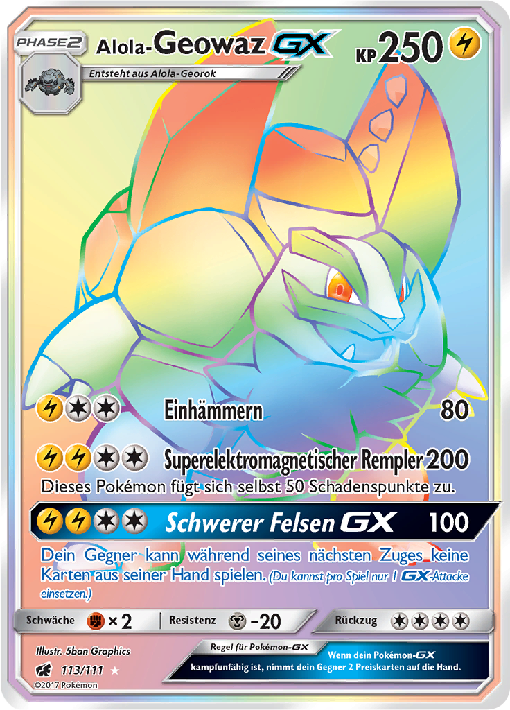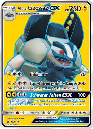 | Kaufen? | Kaufen Sie Ihre Alola-Geowaz-GX Pokemon-Karte aus dem Aufziehen der Sturmröte-Erweiterung. |