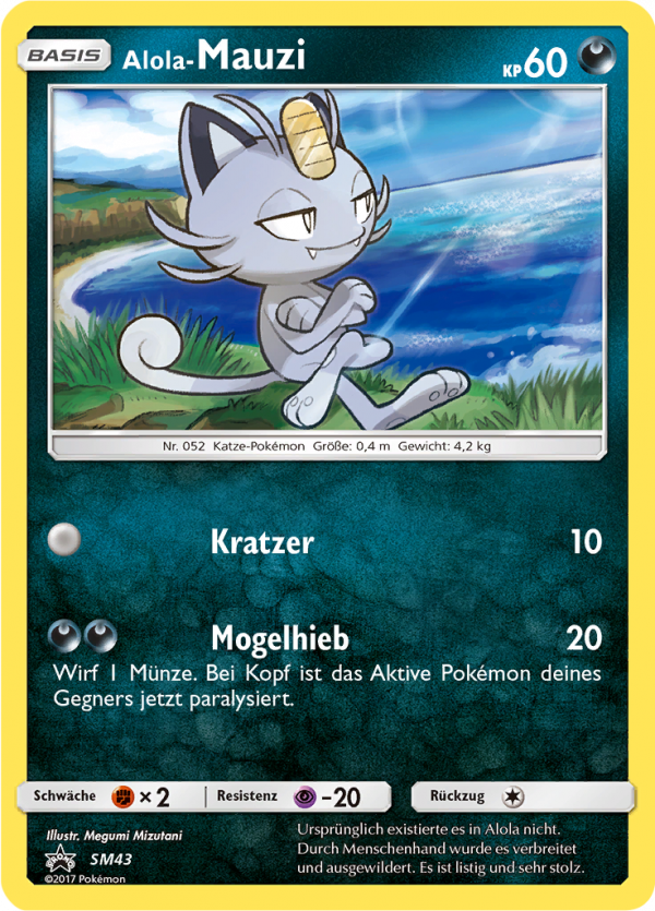 | Kaufen? | Kaufen Sie Ihre Alola-Mauzi Pokemon-Karte aus dem Sun & Moon Promos-Erweiterung. |