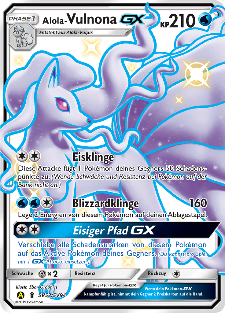 | Kaufen? | Kaufen Sie Ihre Alola-Vulnona-GX Pokemon-Karte aus dem Verborgenes Schicksal - Schillernde Schatzkammer-Erweiterung. |
