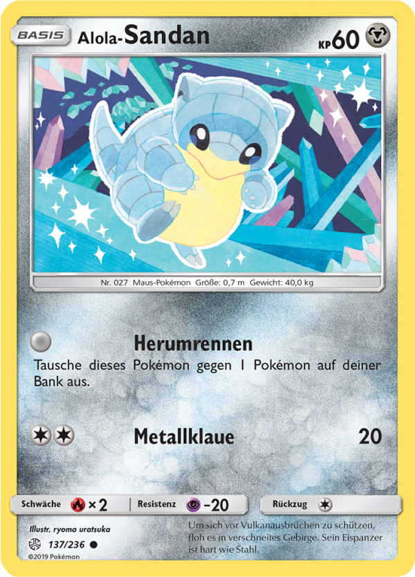 | Kaufen? | Kaufen Sie Ihre Alola-Sandan Pokemon-Karte aus dem Welten im Wandel-Erweiterung. |