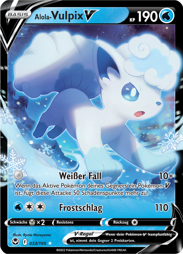 | Kaufen? | Kaufen Sie Ihre Alola Vulpix V Pokemon-Karte aus dem Silberne Sturmwinde-Erweiterung. |