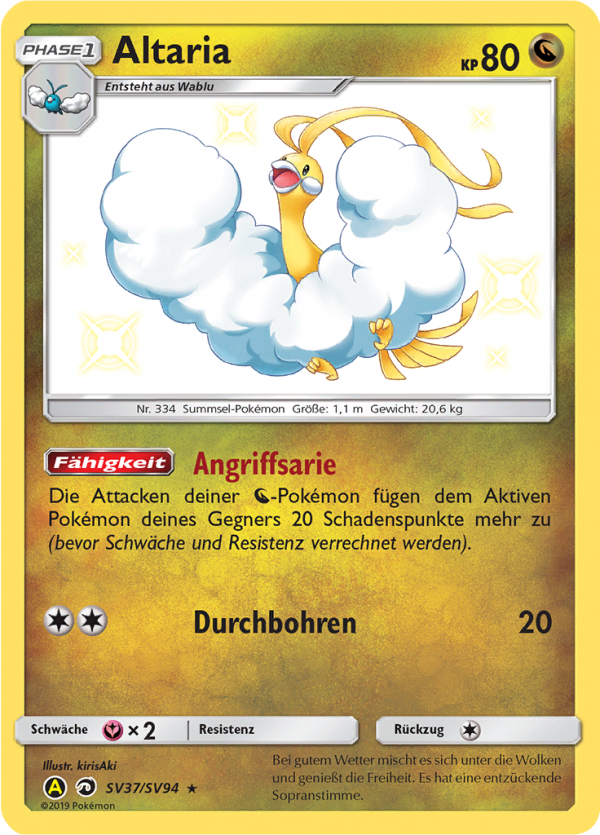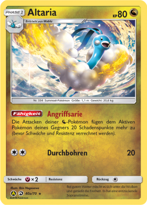 | Alle Karten | Sehen Sie alle Altaria-Pokémonkarten in einer Übersicht. |