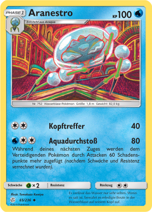 | Alle Karten | Sehen Sie alle Aranestro-Pokémonkarten in einer Übersicht. |