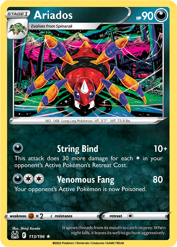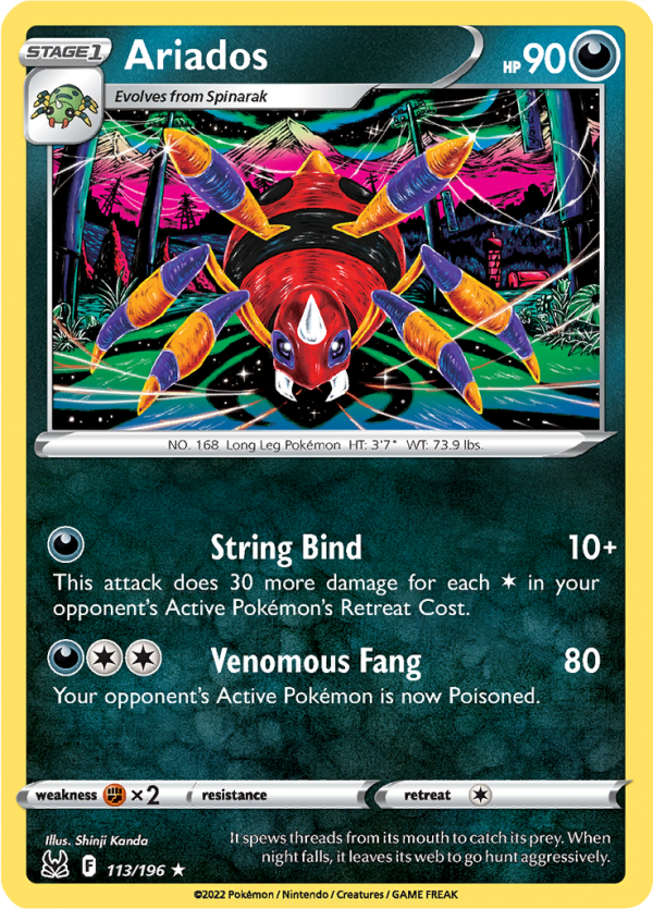 | Kaufen? | Kaufen Sie Ihre Ariados Pokemon-Karte aus dem Lost Origin-Erweiterung. |