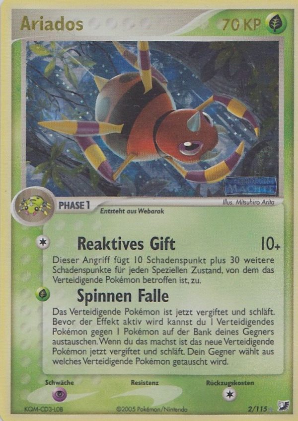 | Kaufen? | Kaufen Sie Ihre Ariados Pokemon-Karte aus dem Verborgene Machte-Erweiterung. |