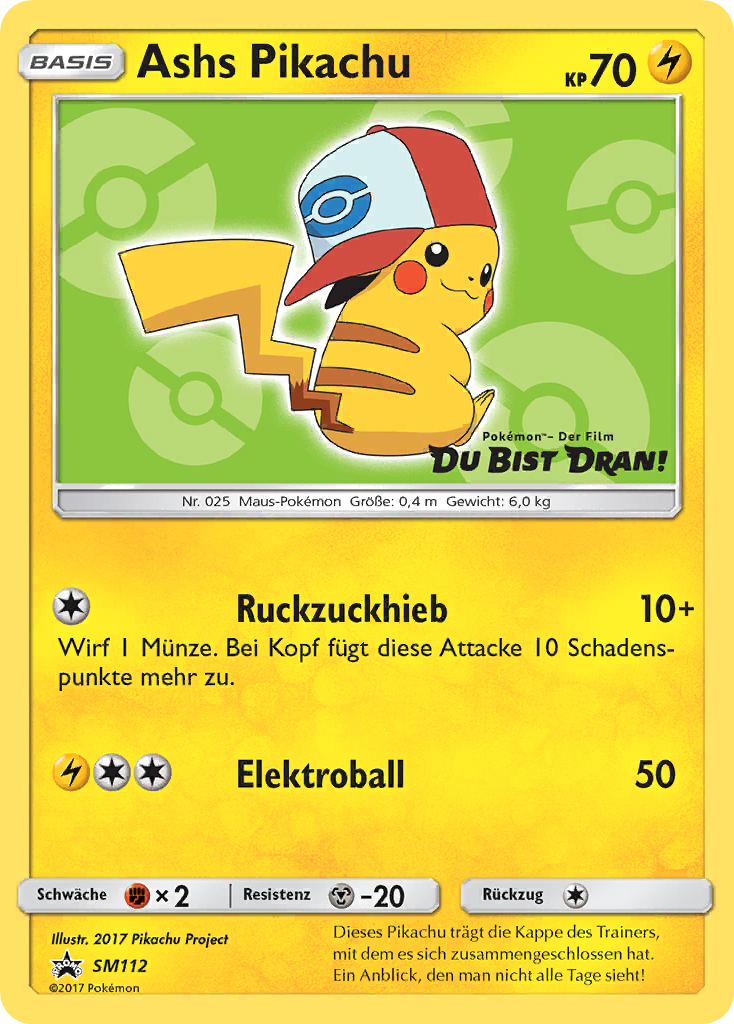 | Kaufen? | Kaufen Sie Ihre Ash's Pikachu Pokemon-Karte aus dem Sun & Moon Promos-Erweiterung. |