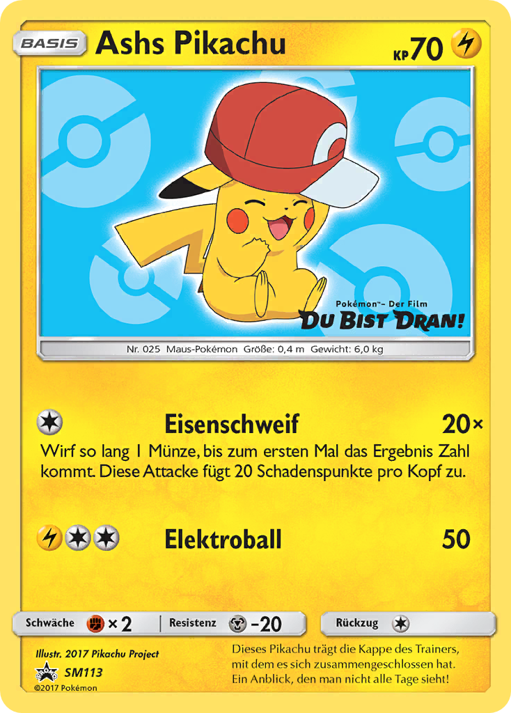 | Kaufen? | Kaufen Sie Ihre Ash's Pikachu Pokemon-Karte aus dem Sun & Moon Promos-Erweiterung. |