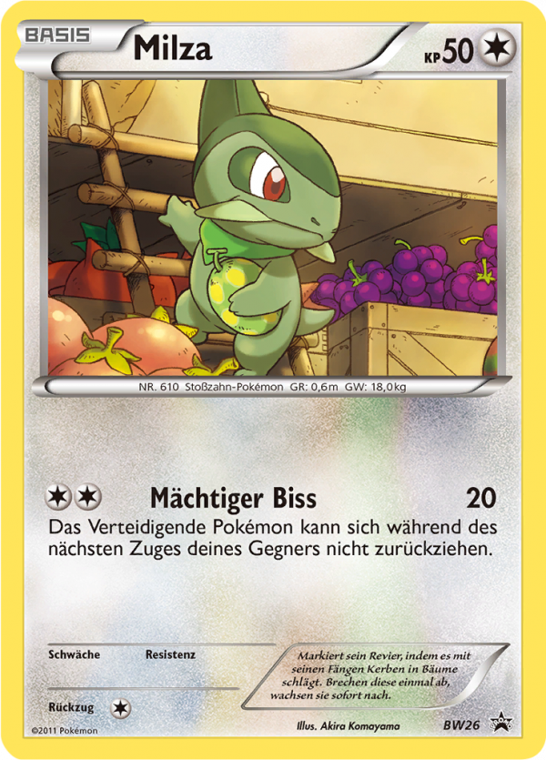 | Kaufen? | Kaufen Sie Ihre Milza Pokemon-Karte aus dem Schwarz & Weiss Promos-Erweiterung. |