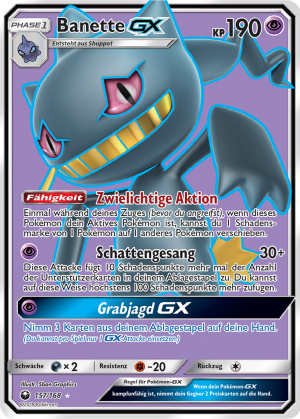 | Alle Karten | Sehen Sie alle Banette-Pokémonkarten in einer Übersicht. |