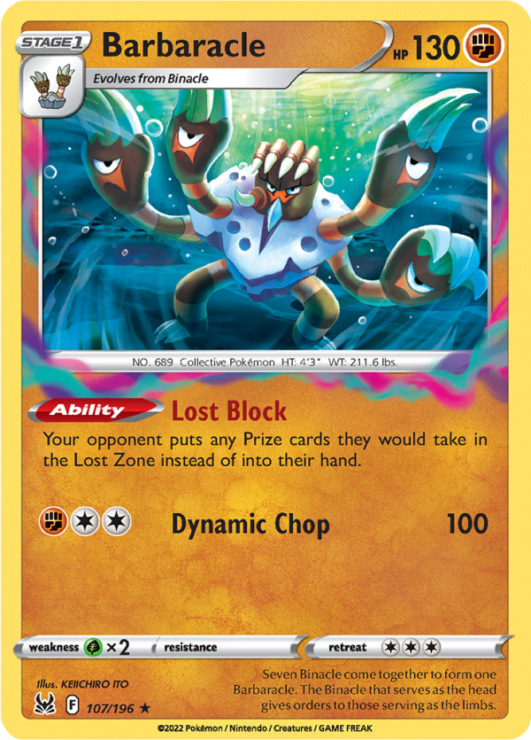 | Kaufen? | Kaufen Sie Ihre Barbaracle Pokemon-Karte aus dem Lost Origin-Erweiterung. |