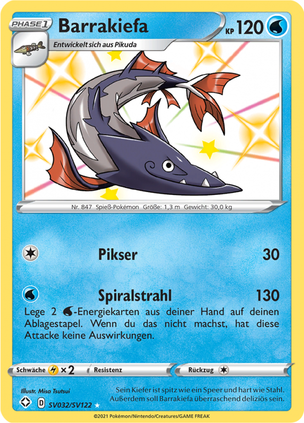 Kaufen? Kaufen Sie Ihre Barrakiefa Pokemon-Karte aus dem Glänzendes Schicksal - Schillernde Schatzkammer-Erweiterung.