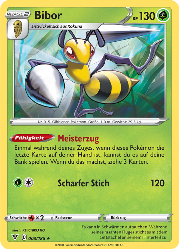 | Kaufen? | Kaufen Sie Ihre Bibor Pokemon-Karte aus dem Farbenschock-Erweiterung. |