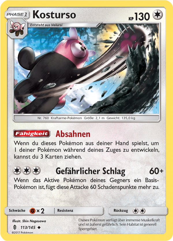 | Kaufen? | Kaufen Sie Ihre Kosturso Pokemon-Karte aus dem Stunde der Wächter-Erweiterung. |