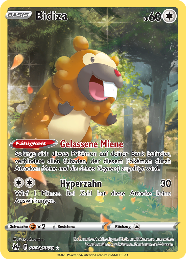 | Kaufen? | Kaufen Sie Ihre Bidiza Pokemon-Karte aus dem Zenit der Könige - Galar-Galerie-Erweiterung. |