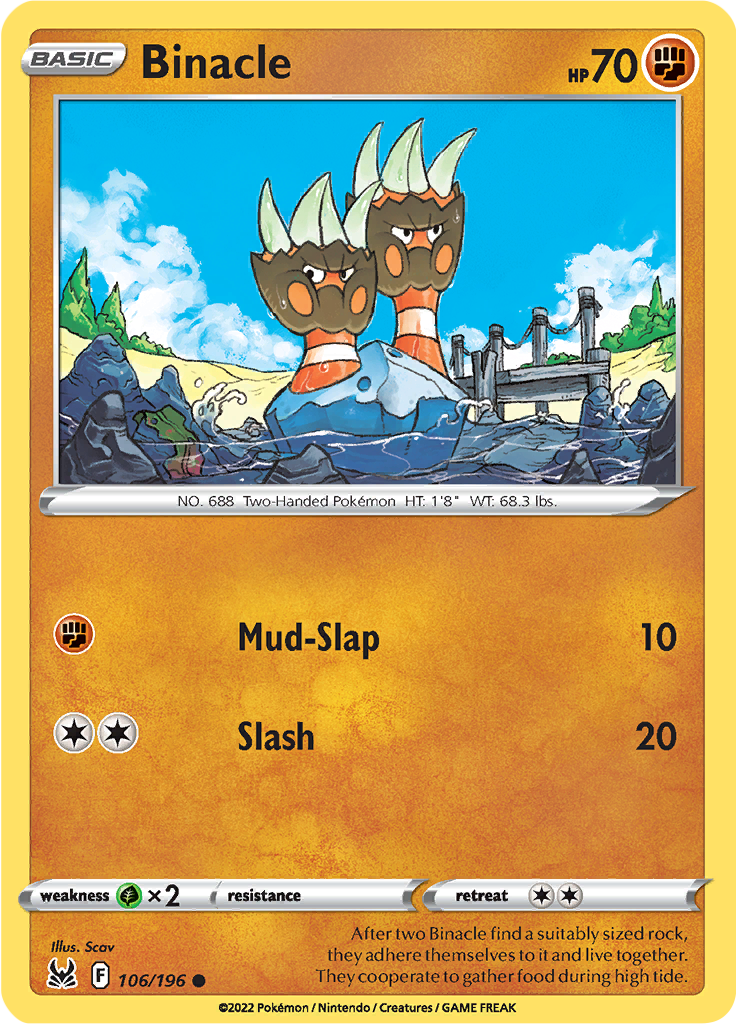 | Kaufen? | Kaufen Sie Ihre Binacle Pokemon-Karte aus dem Lost Origin-Erweiterung. |