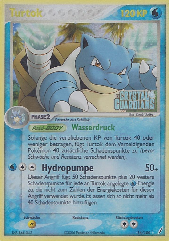 | Karten | Crystal Guardians besteht aus 100 Pokémon Karten. |