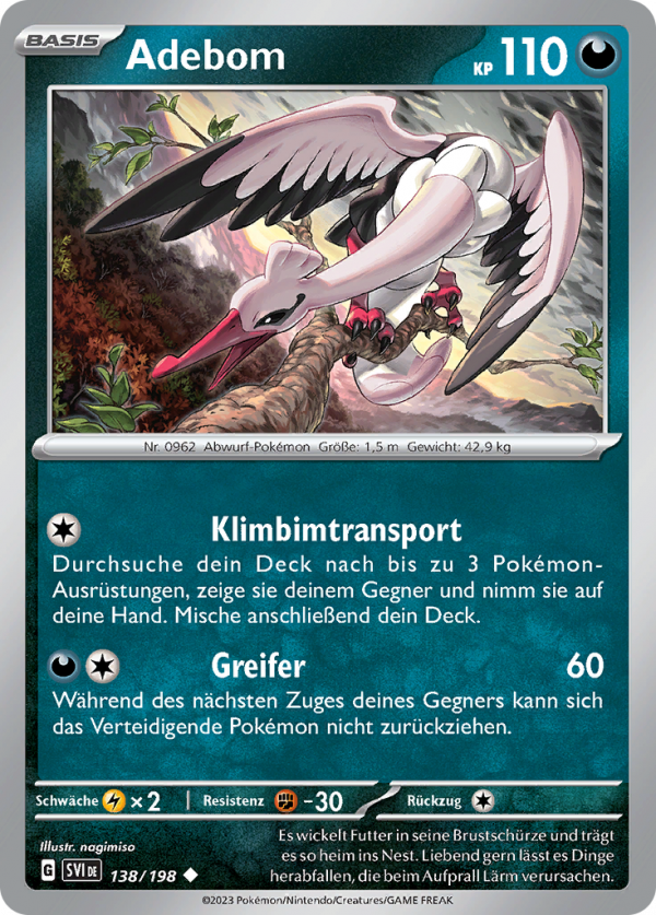 | Kaufen? | Kaufen Sie Ihre Adebom Pokemon-Karte aus dem Karmesin & Purpur-Erweiterung. |