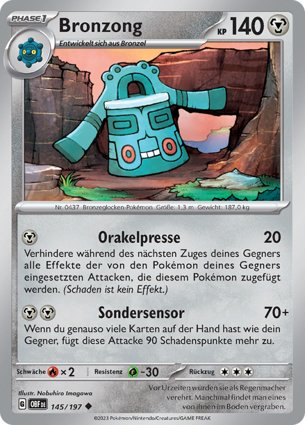 | Kaufen? | Kaufen Sie Ihre Bronzong Pokemon-Karte aus dem Obsidianflammen-Erweiterung. |