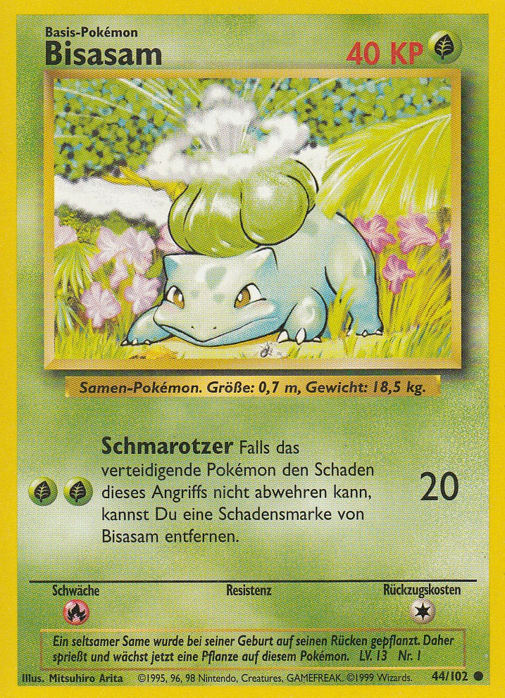 | Kaufen? | Kaufen Sie Ihre Bisasam Pokemon-Karte aus dem Grundset-Erweiterung. |