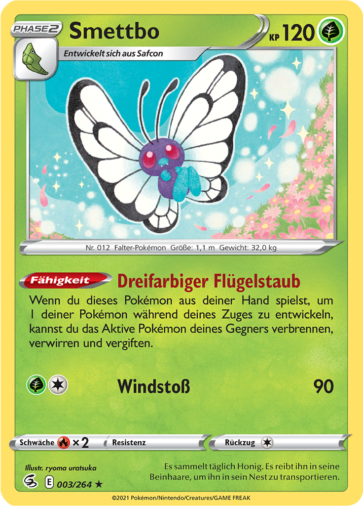 | Kaufen? | Kaufen Sie Ihre Smettbo Pokemon-Karte aus dem Fusionsangriff-Erweiterung. |
