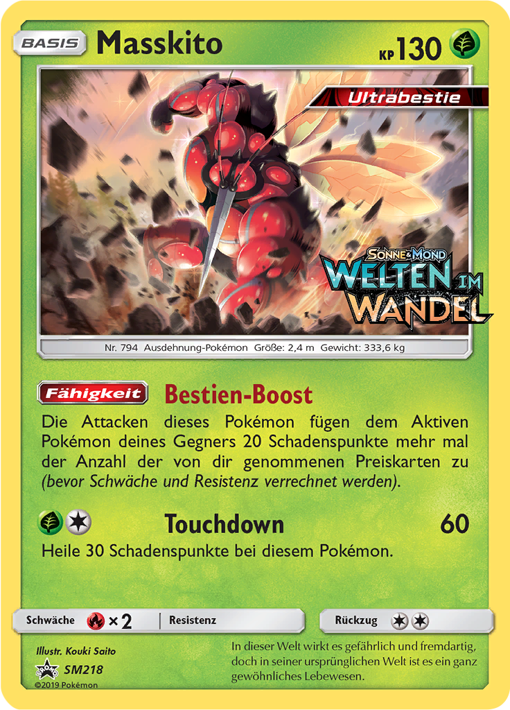 | Kaufen? | Kaufen Sie Ihre Masskito Pokemon-Karte aus dem Sun & Moon Promos-Erweiterung. |