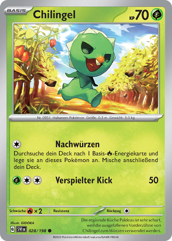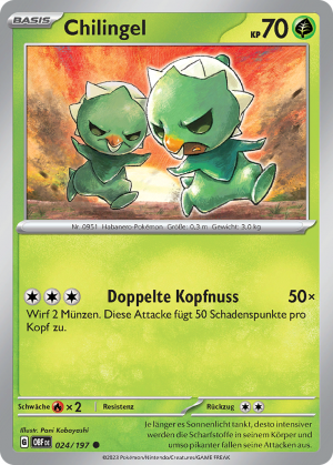 | Kaufen? | Kaufen Sie Ihre Chilingel Pokemon-Karte aus dem Karmesin & Purpur-Erweiterung. |