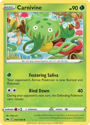 | Alle Karten | Sehen Sie alle Carnivine-Pokémonkarten in einer Übersicht. |