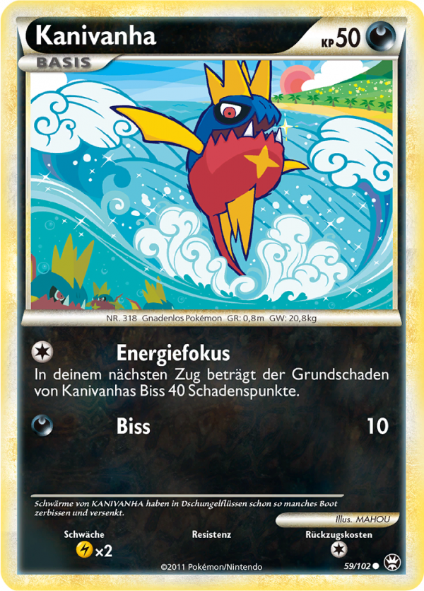 | Alle Karten | Sehen Sie alle Kanivanha-Pokémonkarten in einer Übersicht. |