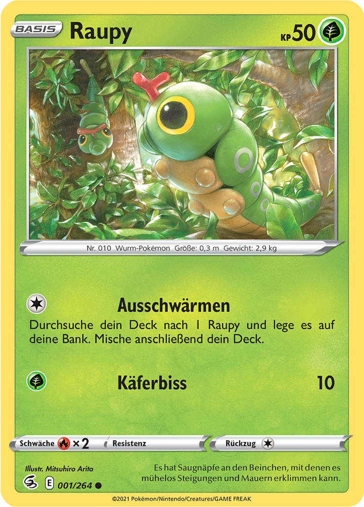 | Kaufen? | Kaufen Sie Ihre Raupy Pokemon-Karte aus dem Fusionsangriff-Erweiterung. |