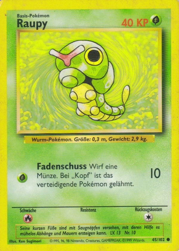 | Kaufen? | Kaufen Sie Ihre Raupy Pokemon-Karte aus dem Grundset-Erweiterung. |