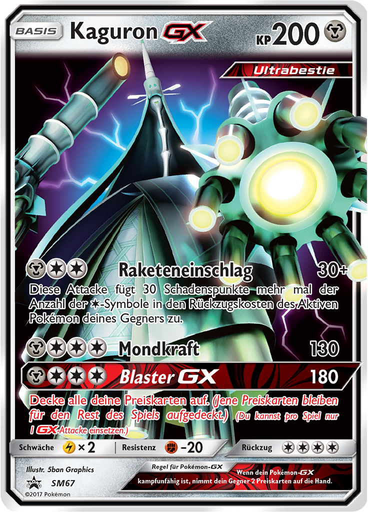 | Kaufen? | Kaufen Sie Ihre Kaguron-GX Pokemon-Karte aus dem Sun & Moon Promos-Erweiterung. |