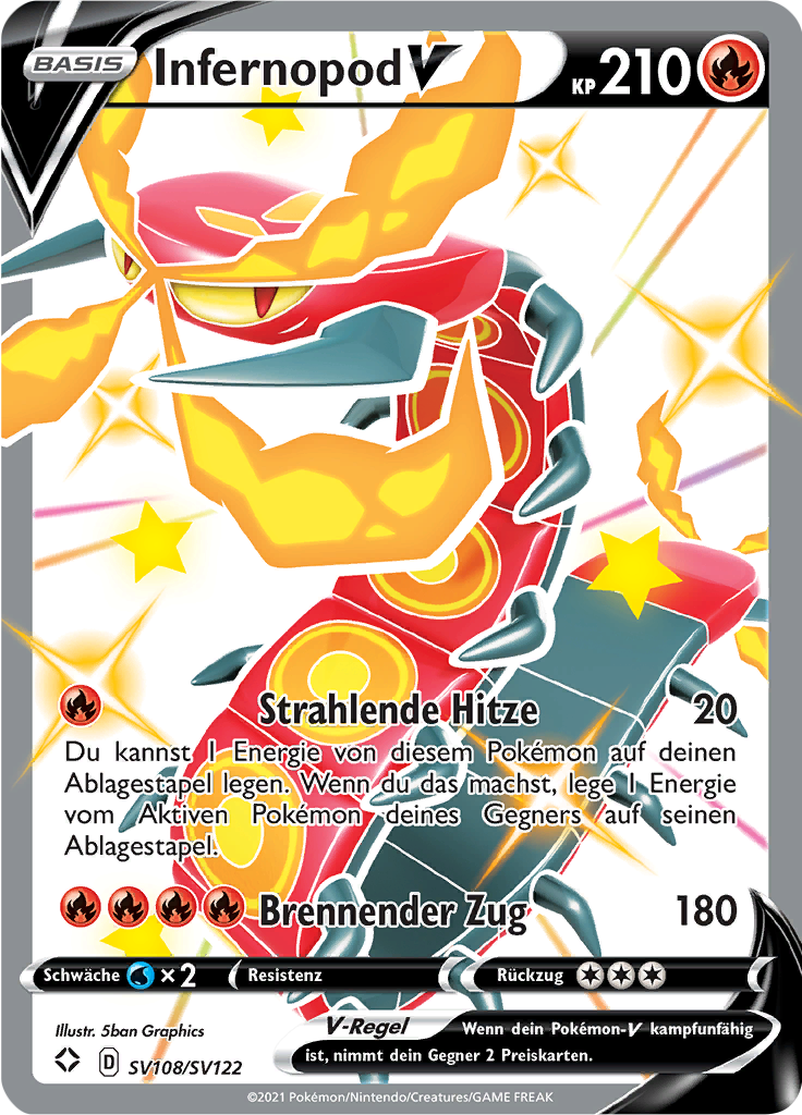 | Kaufen? | Kaufen Sie Ihre Infernopod V Pokemon-Karte aus dem Glänzendes Schicksal - Schillernde Schatzkammer-Erweiterung. |