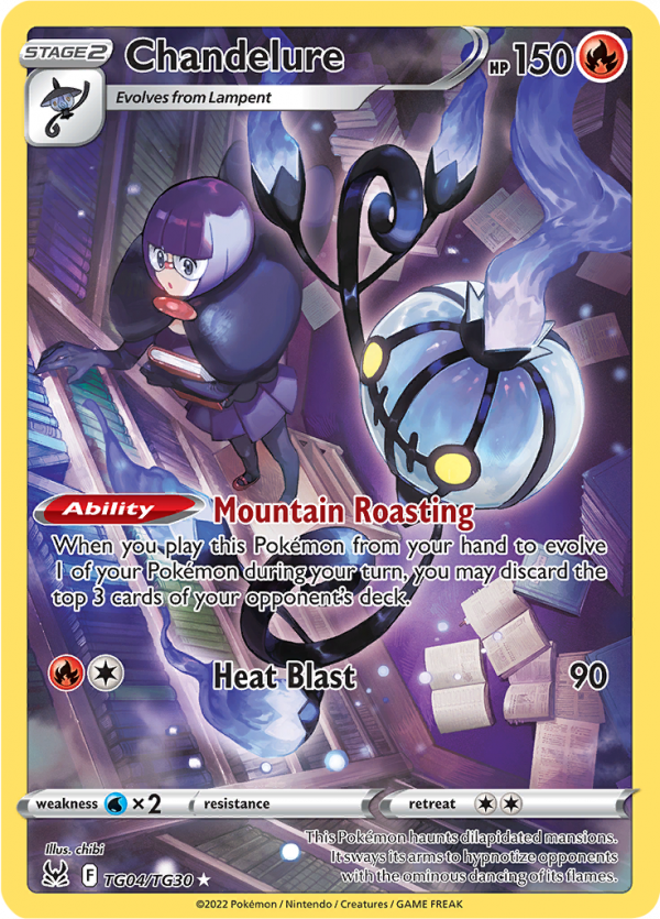 | Kaufen? | Kaufen Sie Ihre Chandelure Pokemon-Karte aus dem Lost Origin - Trainer Gallery-Erweiterung. |