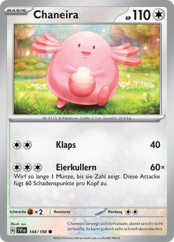 | Kaufen? | Kaufen Sie Ihre Chaneira Pokemon-Karte aus dem Karmesin & Purpur-Erweiterung. |