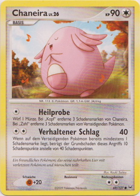 | Kaufen? | Kaufen Sie Ihre Chaneira Pokemon-Karte aus dem Platin-Erweiterung. |