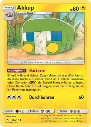 | Alle Karten | Sehen Sie alle Akkup-Pokémonkarten in einer Übersicht. |