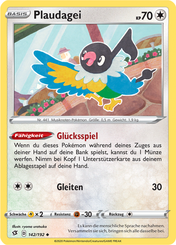 | Kaufen? | Kaufen Sie Ihre Plaudagei Pokemon-Karte aus dem Clash der Rebellen-Erweiterung. |