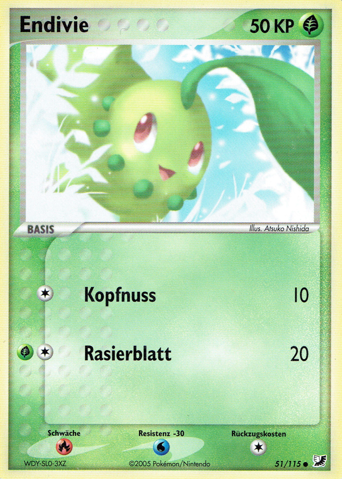 | Alle Karten | Sehen Sie alle Endivie-Pokémonkarten in einer Übersicht. |
