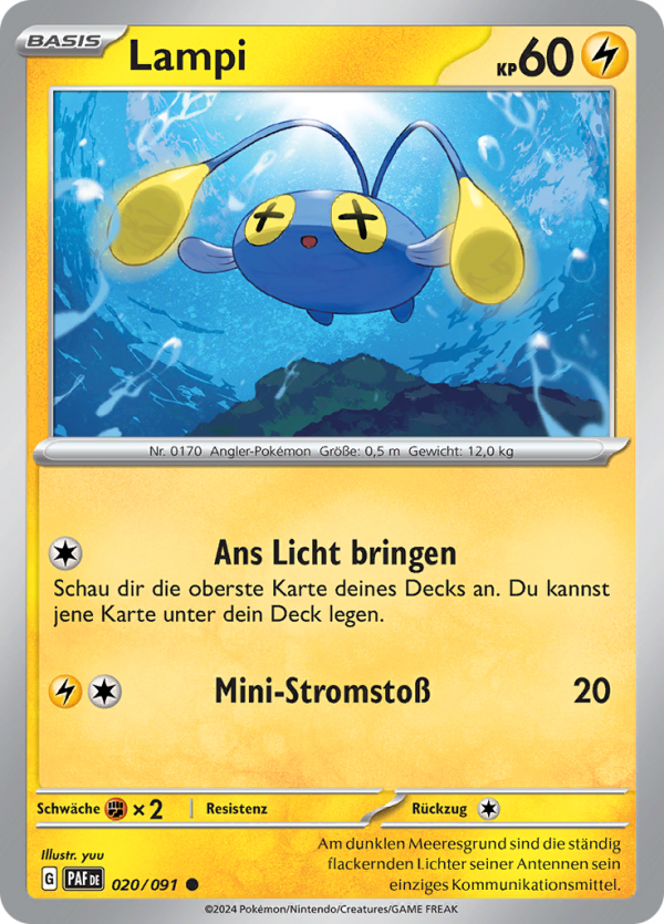| Kaufen? | Kaufen Sie Ihre Lampi Pokemon-Karte aus dem Paldeas Schicksale-Erweiterung. |