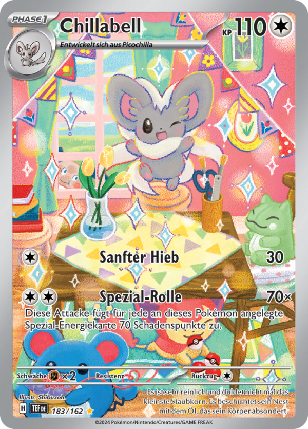 | Alle Karten | Sehen Sie alle Chillabell-Pokémonkarten in einer Übersicht. |