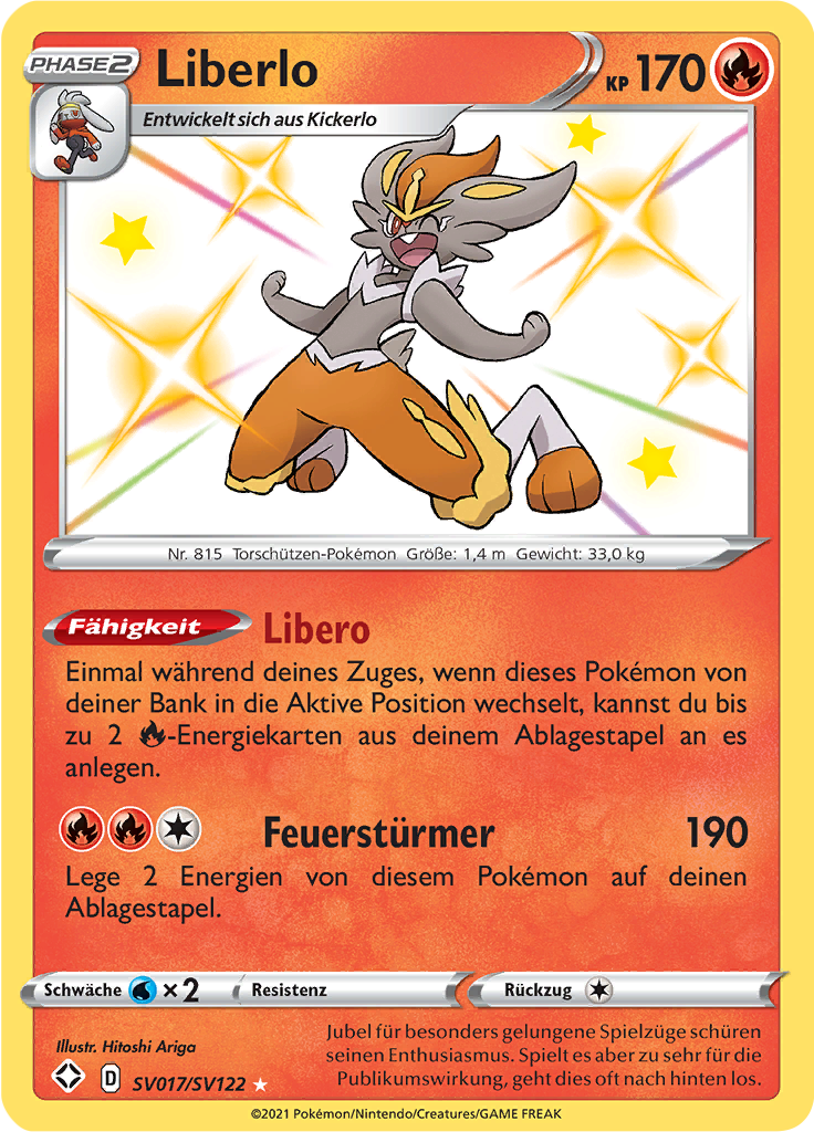 | Kaufen? | Kaufen Sie Ihre Liberlo Pokemon-Karte aus dem Glänzendes Schicksal - Schillernde Schatzkammer-Erweiterung. |