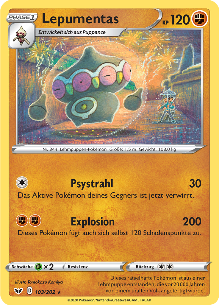| Kaufen? | Kaufen Sie Ihre Lepumentas Pokemon-Karte aus dem Schwert & Schild-Erweiterung. |