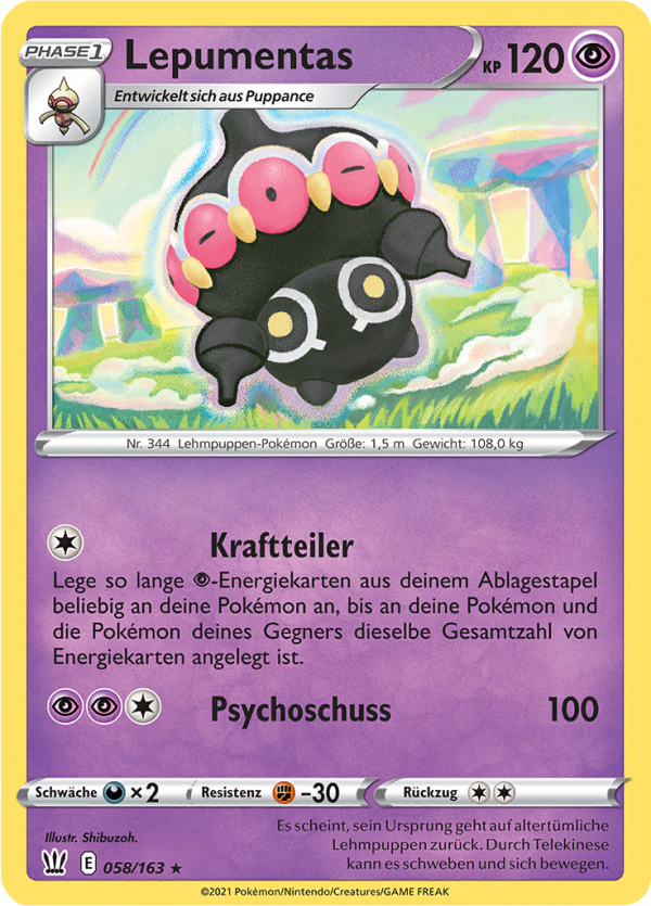 | Kaufen? | Kaufen Sie Ihre Lepumentas Pokemon-Karte aus dem Kampfstile-Erweiterung. |