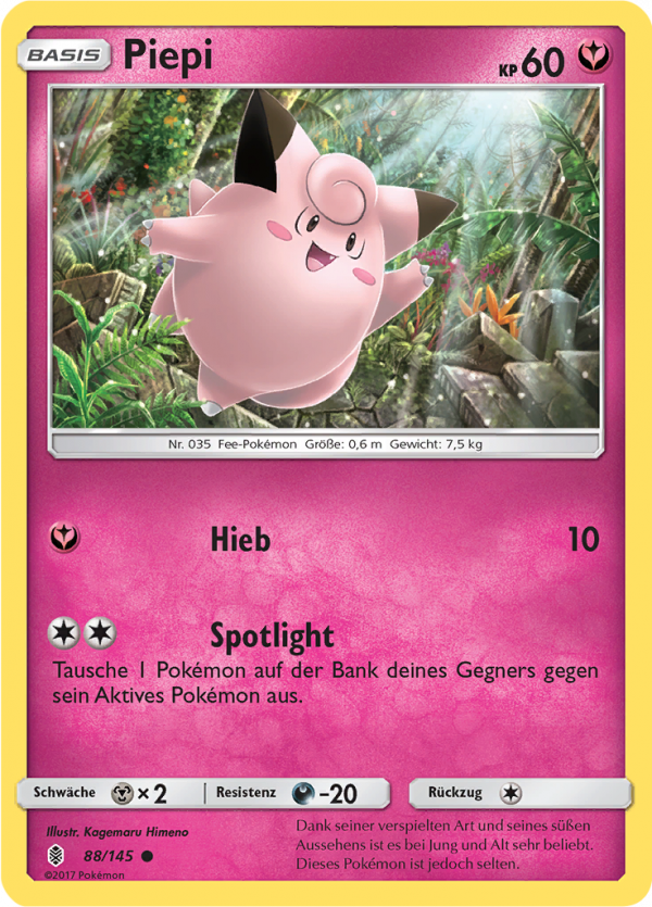 | Kaufen? | Kaufen Sie Ihre Piepi Pokemon-Karte aus dem Stunde der Wächter-Erweiterung. |