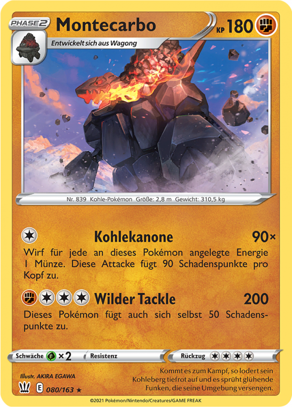 | Kaufen? | Kaufen Sie Ihre Montecarbo Pokemon-Karte aus dem Kampfstile-Erweiterung. |
