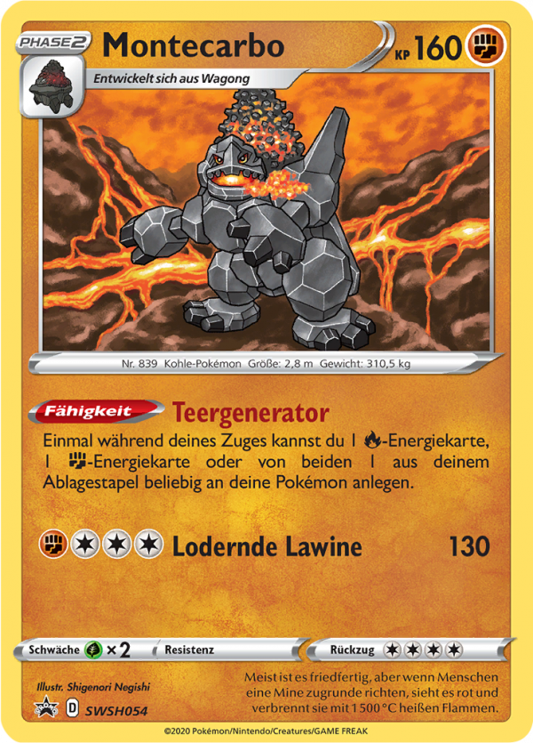 | Kaufen? | Kaufen Sie Ihre Montecarbo Pokemon-Karte aus dem Schwert & Schild Promos-Erweiterung. |