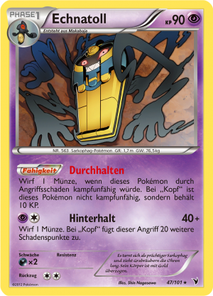 | Alle Karten | Sehen Sie alle Echnatoll-Pokémonkarten in einer Übersicht. |